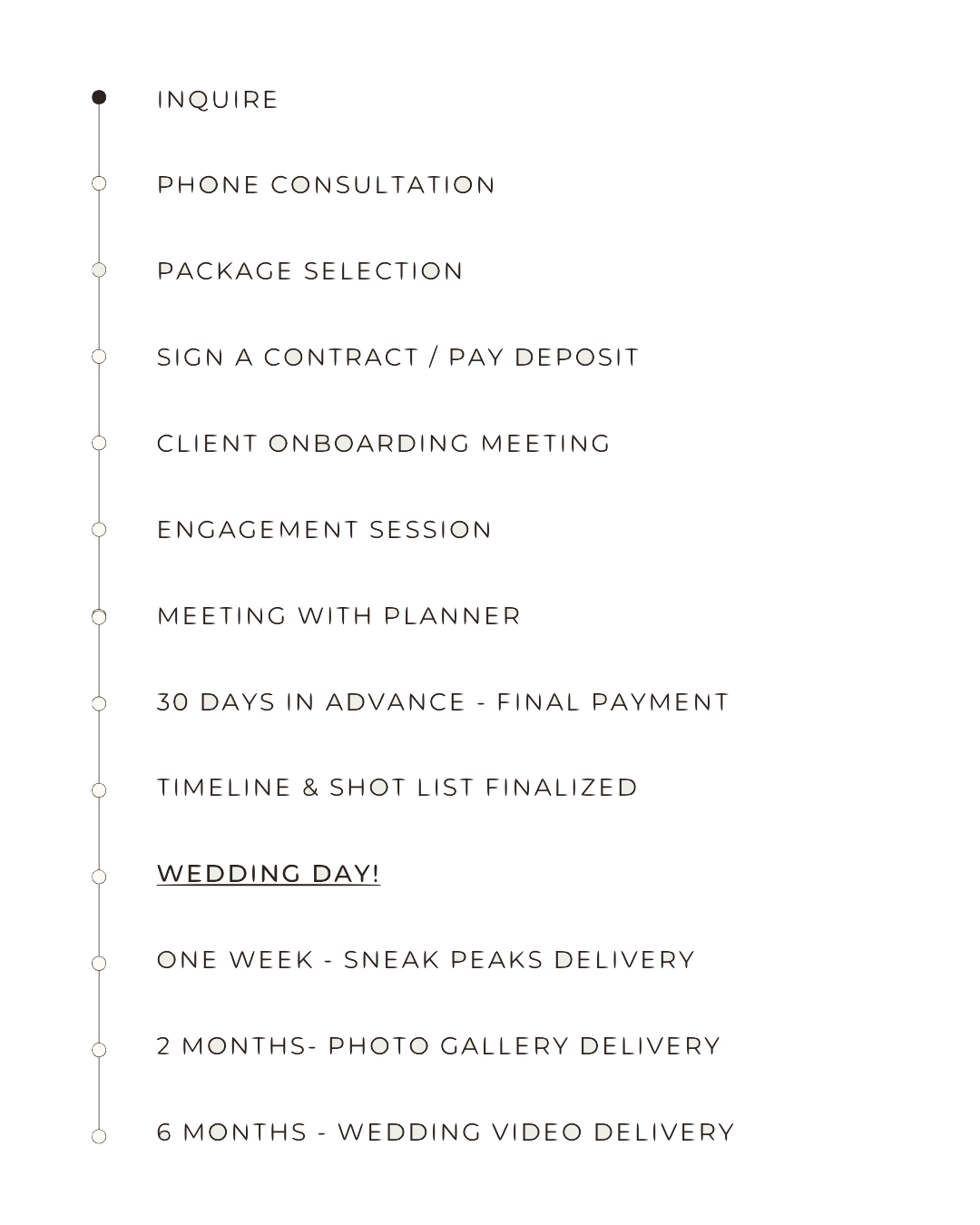 Designed for the couple who values legacy and effortless elegance. Full-Weekend coverage, multiple photographers, hybrid film & digital imagery, & drone coverage. Includes timeline assistance and custom weekend coverage.